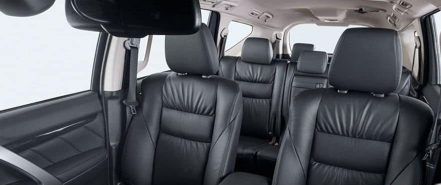 O habitáculo do Pajero Sport é bem amplo e caracterizado por linhas contemporâneas e com assentos largos, dotados de abas altas para segurar bem o corpo e revestimento em couro.