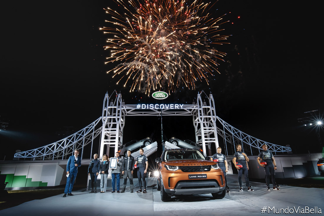A apresentação do novo Land Rover Discovery mostrou a incrível versatilidade no seu interior de sete lugares, um design revolucionário e uma redefinição no segmento dos SUVs premium. Além disso, a quebra do recorde mundial se deu com a apresentação da versão em LEGO da famosa Tower Bridge, em londres. A escultura com 13 metros de altura e com mais de 5,8 milhões de peças é a maior estrutura LEGO já montada no mundo. A estreia mundial tecnológica do Trono Intelligent Fold permite que os clientes configurem remotamente os assentos de segunda e terceira linha usando apenas um smartphone. A nova Discovery é equipada com até nove portas USB, seis pontos de carregamento 12 volts e um hotspot Wi-Fi no carro para até 8 dispositivos. O recém anunciado App Spotify da Jaguar Land Rover oferece "músicas para cada momento" disponível em rádios e listas de reprodução personalizadas baseadas nos gostos dos usuários.
