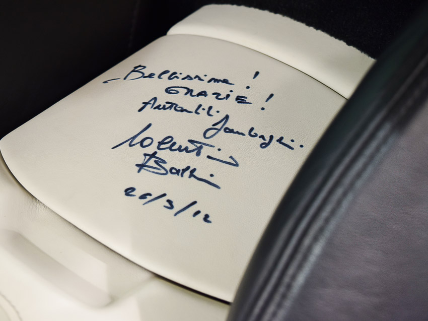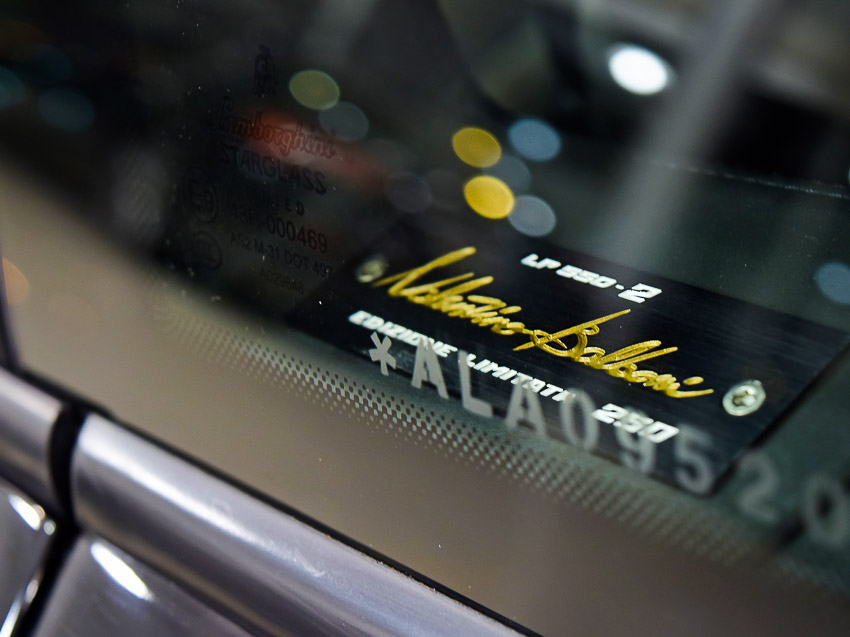 A produção do Lamborghini LP 550-2 Valentino Balboni foi limitada a 250 unidades. Temos um exemplar deste modelo disponível em nosso estoque que possui um autógrafo oficial, feito à mão, pelo piloto em uma visita feita ao Brasil.
